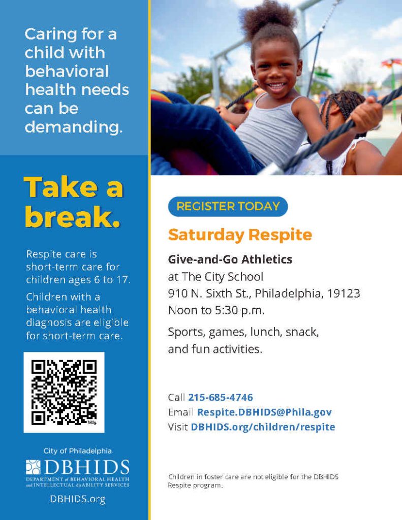- Saturday Respite: Take your child to The City School for recreational programming with Give and Go Athletics. Fun activities on Saturdays from noon to 5:30 p.m.